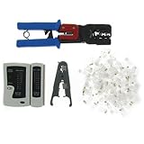 Review - Computer Networking CAT5e Connector Tool Kit, 100 pcs RJ45 CAT5e Plugs, Cable Stripper, Ratchet Crimper and Cable Tester